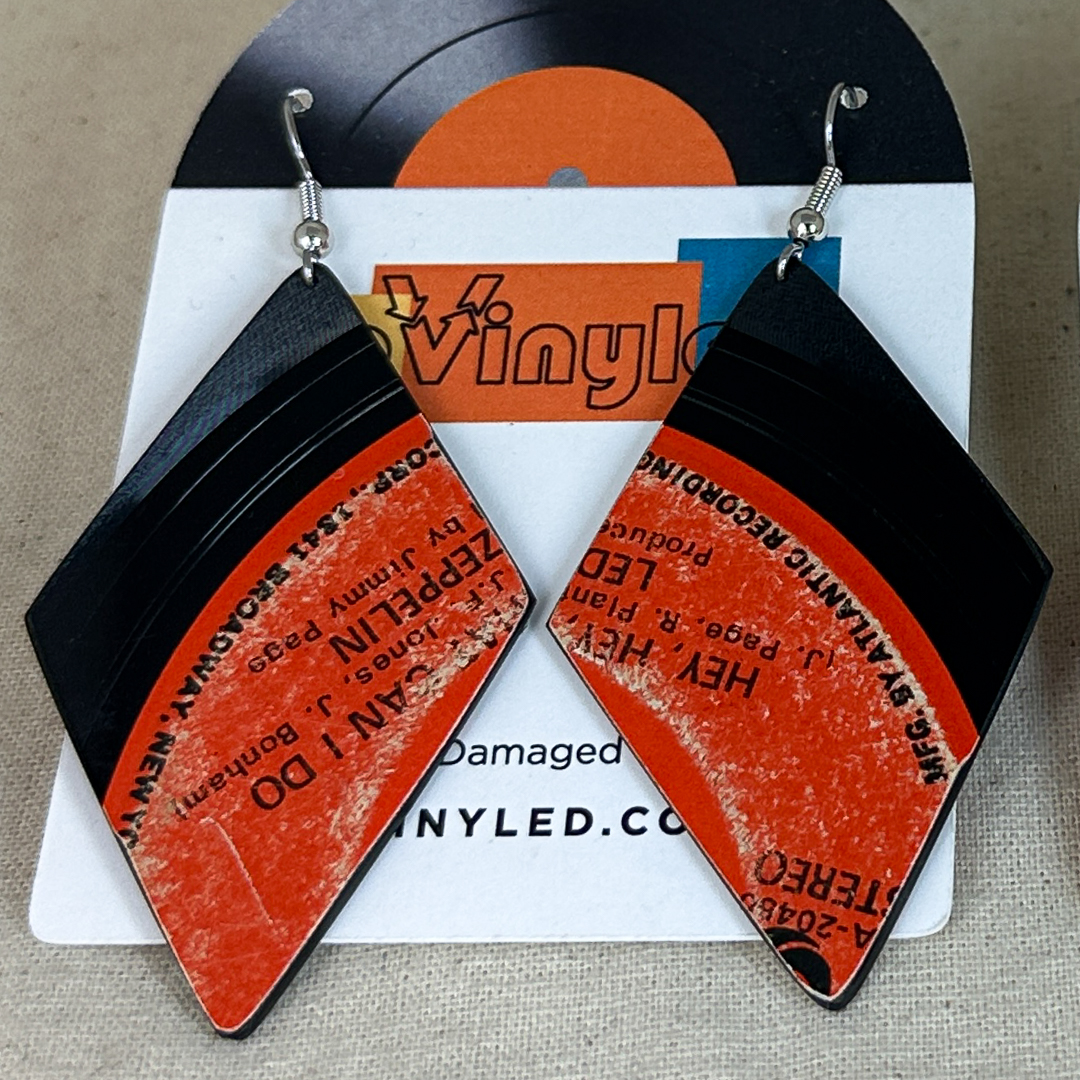 Upcycled Vinyl Record Earrings ~ Led Zeppelin ~ Extra Large Asymmetrical Dangle