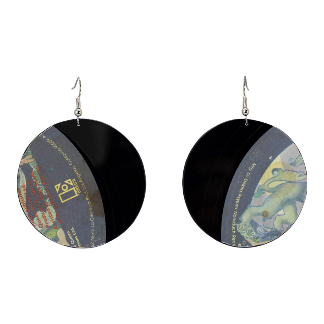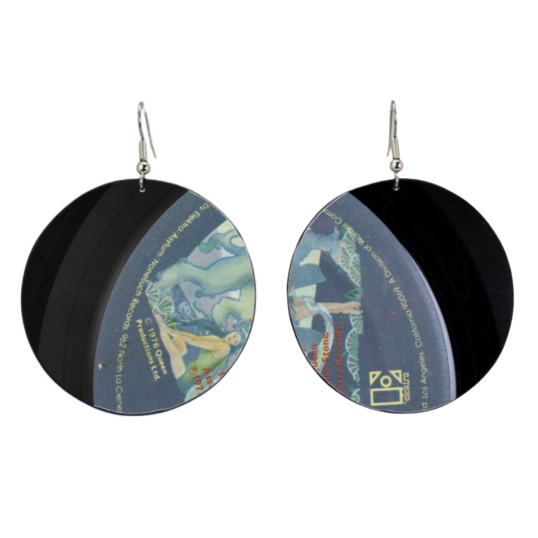 Each Large Round Classic Dangle is hand-cut and hand-filed from an authentic pressing of Queen’s “News of the World.” The round silhouette adds movement and character while preserving the grooves and history of the original vinyl. Lightweight yet visually striking, these earrings transform rescued music history into a wearable statement piece that feels both nostalgic and modern.