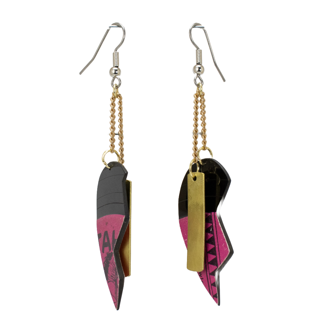 Materials: Upcycled vinyl record, stainless-steel ear wire, gold-colored base metal chain