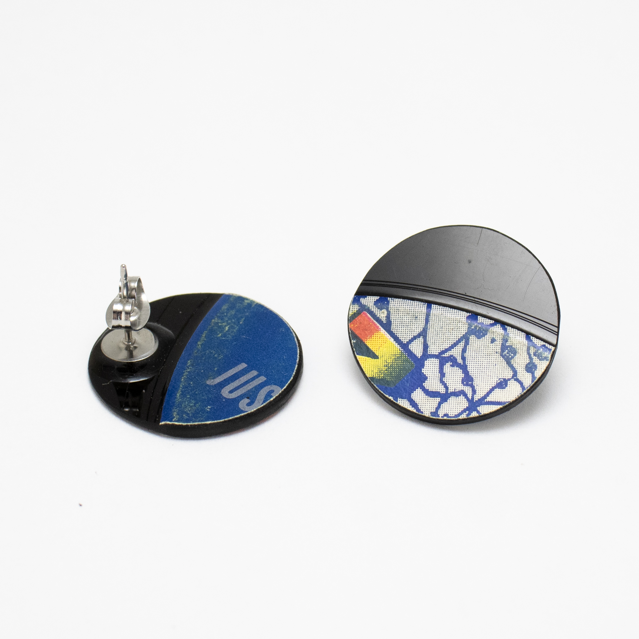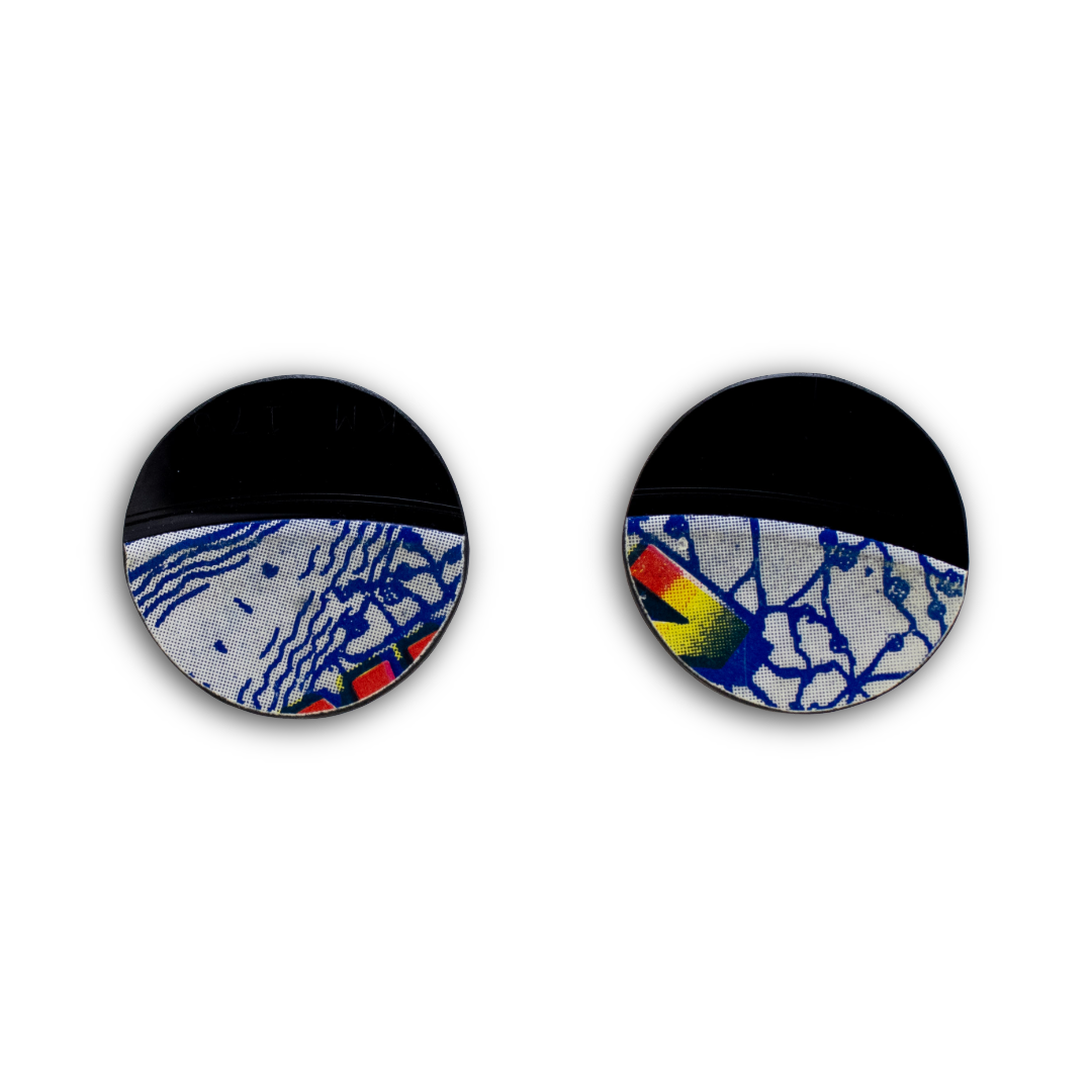 Each Small Button Round Stud is hand-cut and hand-filed from an authentic 45 rpm record featuring Michael Jackson’s “Rockin’ Robin.” The compact silhouette keeps the look clean and minimal while still showcasing the character of the original vinyl. Lightweight and easy to wear, these studs offer a subtle way to carry music history with you every day.