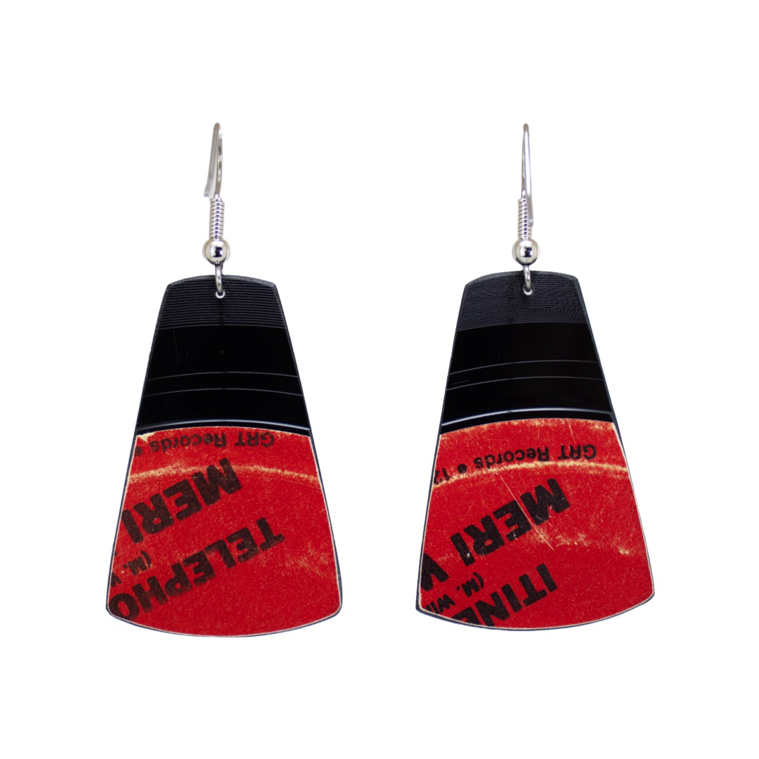 Be the first to review “Upcycled Vinyl Record Earrings ~ Meri Williams ~ Small Tapered Rectangle Dangle” Cancel reply