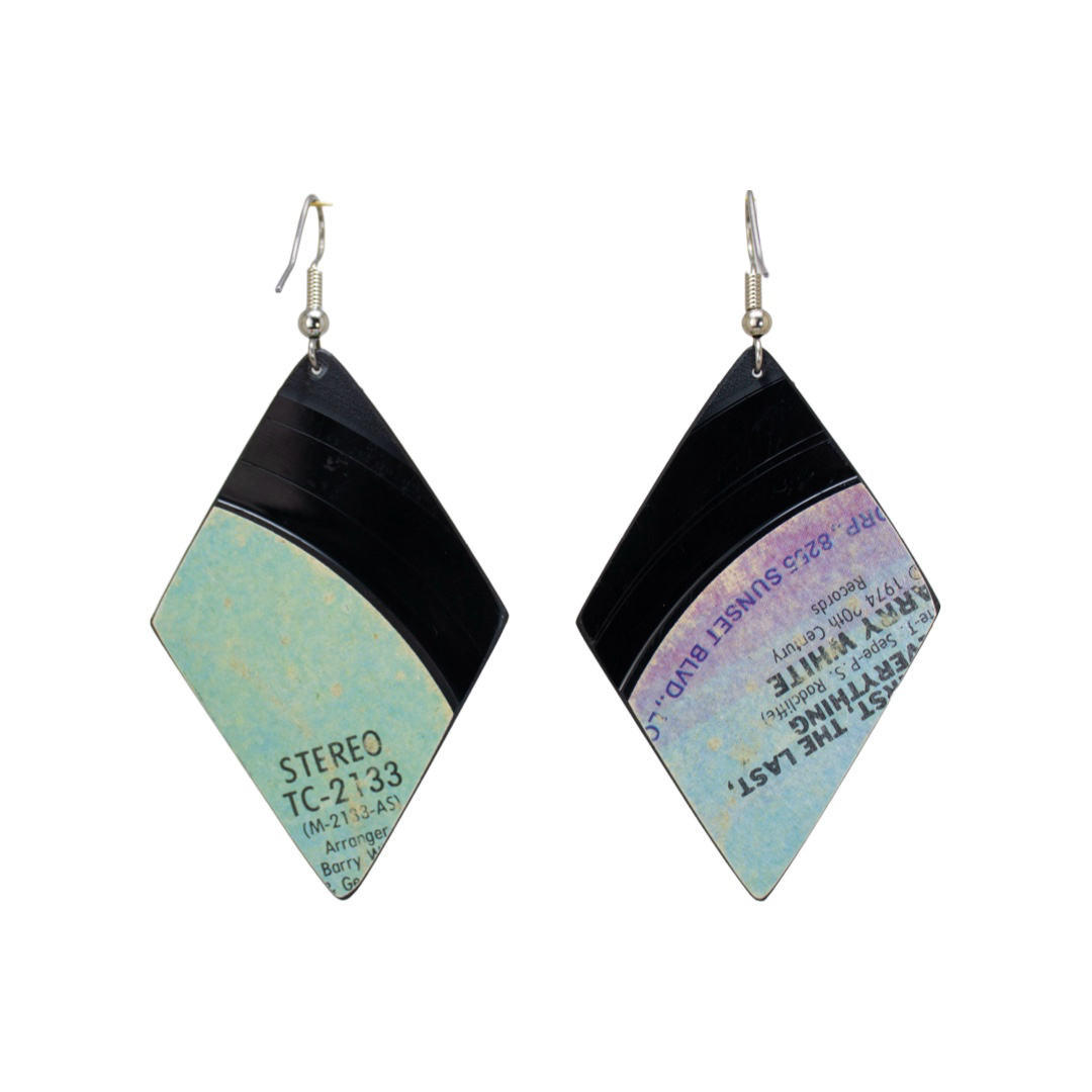 Upcycled Vinyl Record Earrings ~ Barry White ~ Medium Diamond Dangle