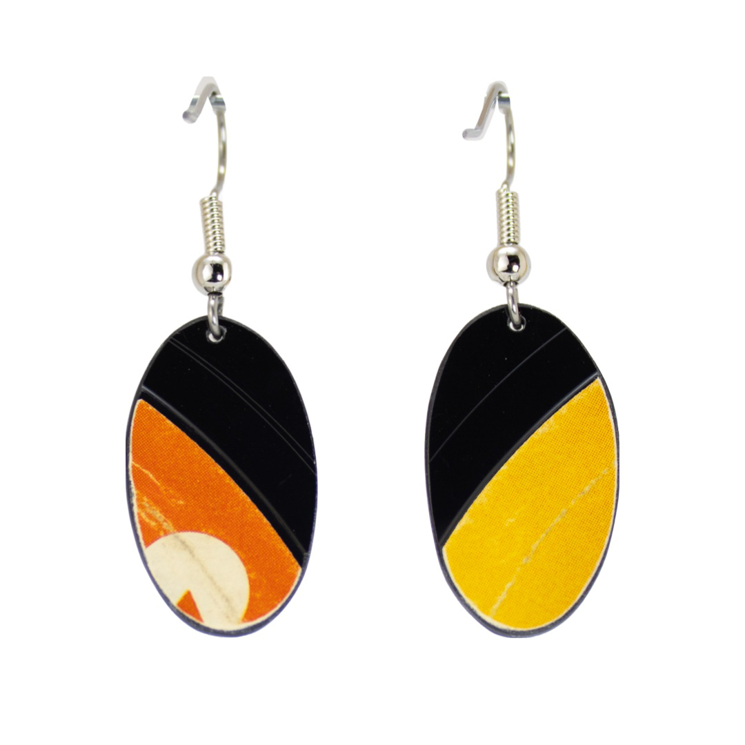 Materials: Upcycled vinyl record, stainless-steel ear wire