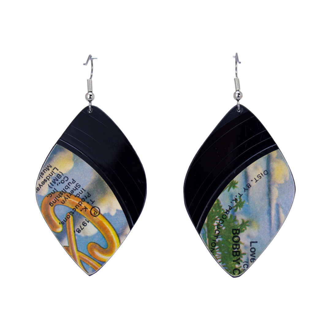 Get ready to groove in style with these Upcycled Vinyl Record Earrings featuring the soulful sounds of Bobby Caldwell.