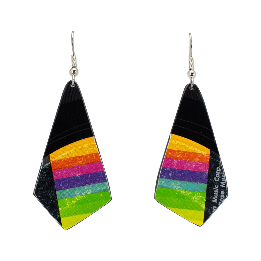 Handcrafted with attention to detail capturing the vibrant rainbow stripes of the Decca Record Label, these small dangle earrings are sure to make a statement.