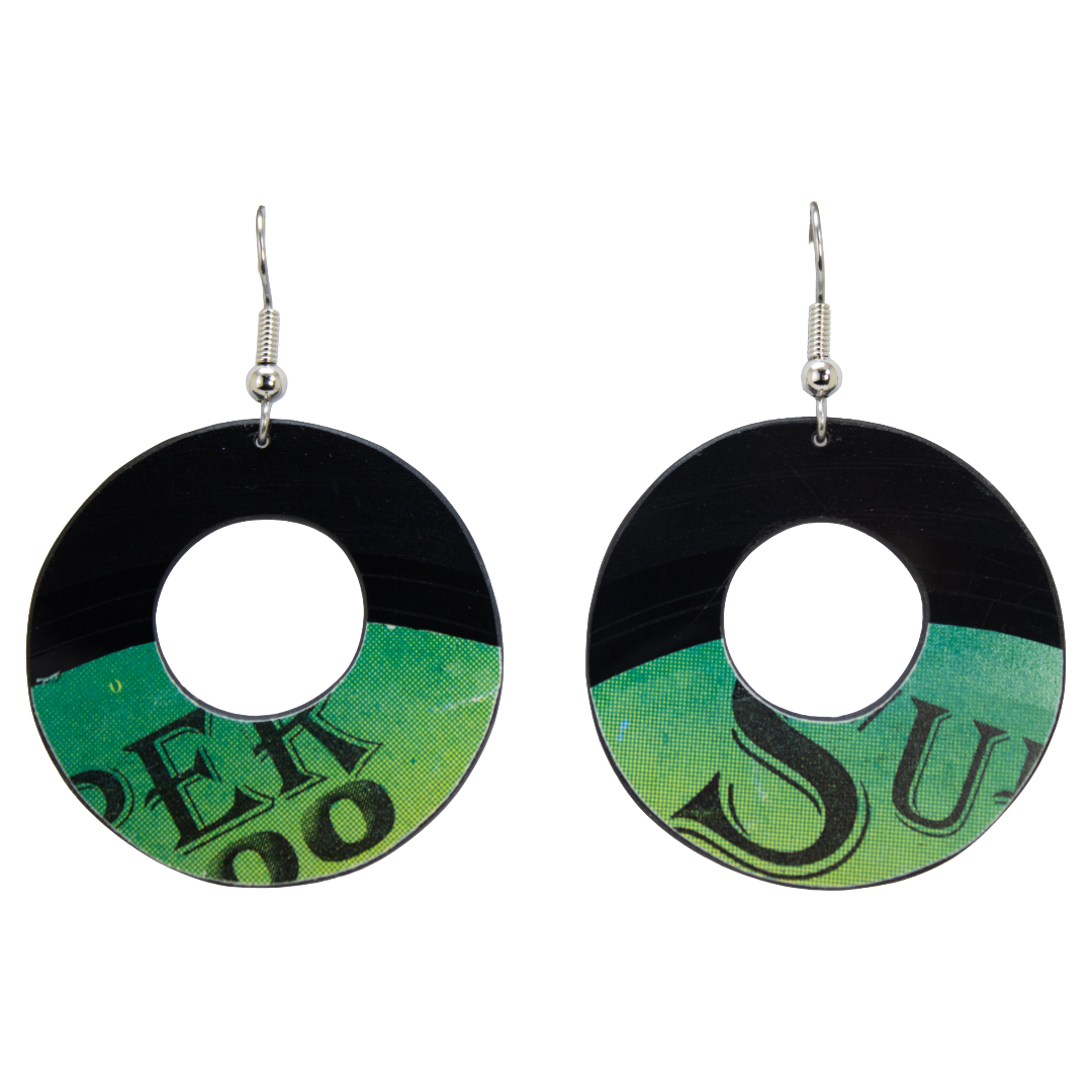• Materials: Upcycled vinyl record, stainless-steel ear wire
