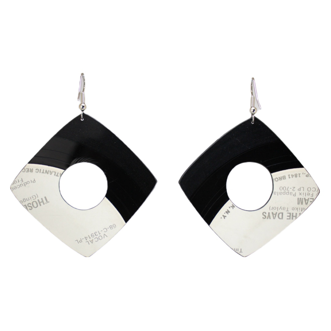 Be the first to review “Upcycled Vinyl Record Earrings ~ Cream ~ Large Square Hole Dangle”