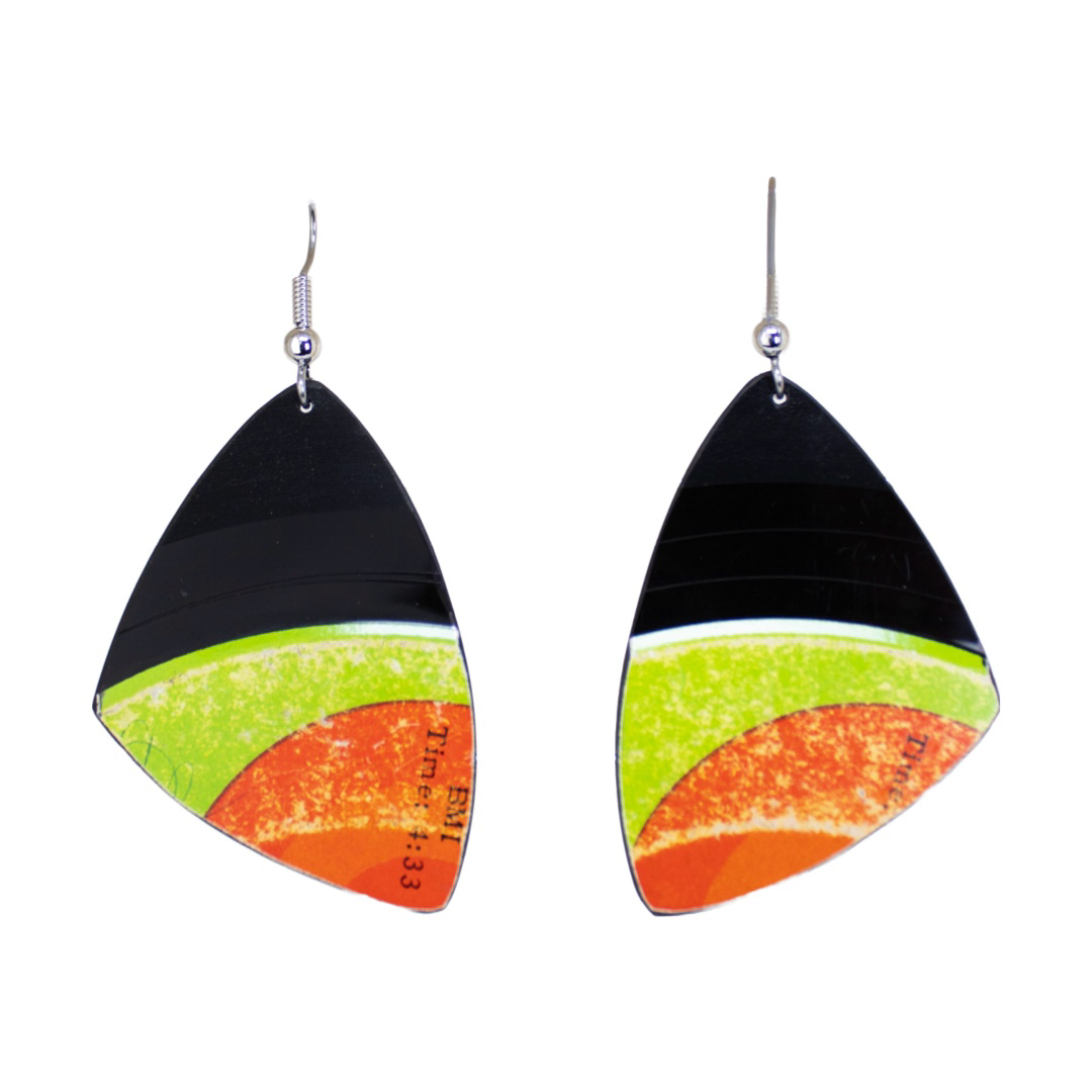 These cute dangle earrings are perfect for the modest accessory wearing music lovers and eco-conscious fashionistas alike.