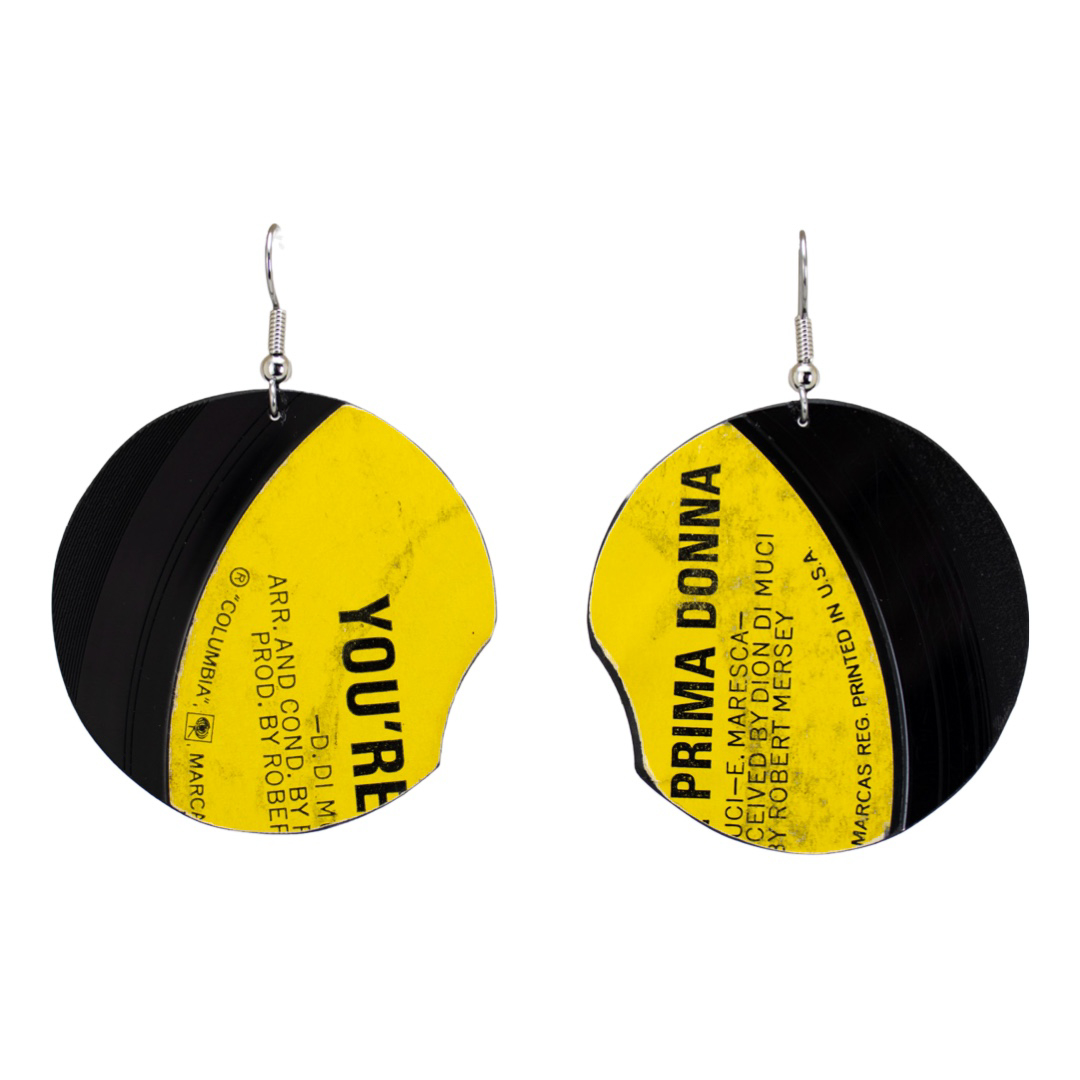 Upcycled Vinyl Record Earrings ~ Dion Di Muci ~ Medium Round Dangle