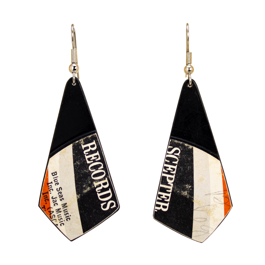 Materials: Upcycled vinyl record, stainless-steel ear wire