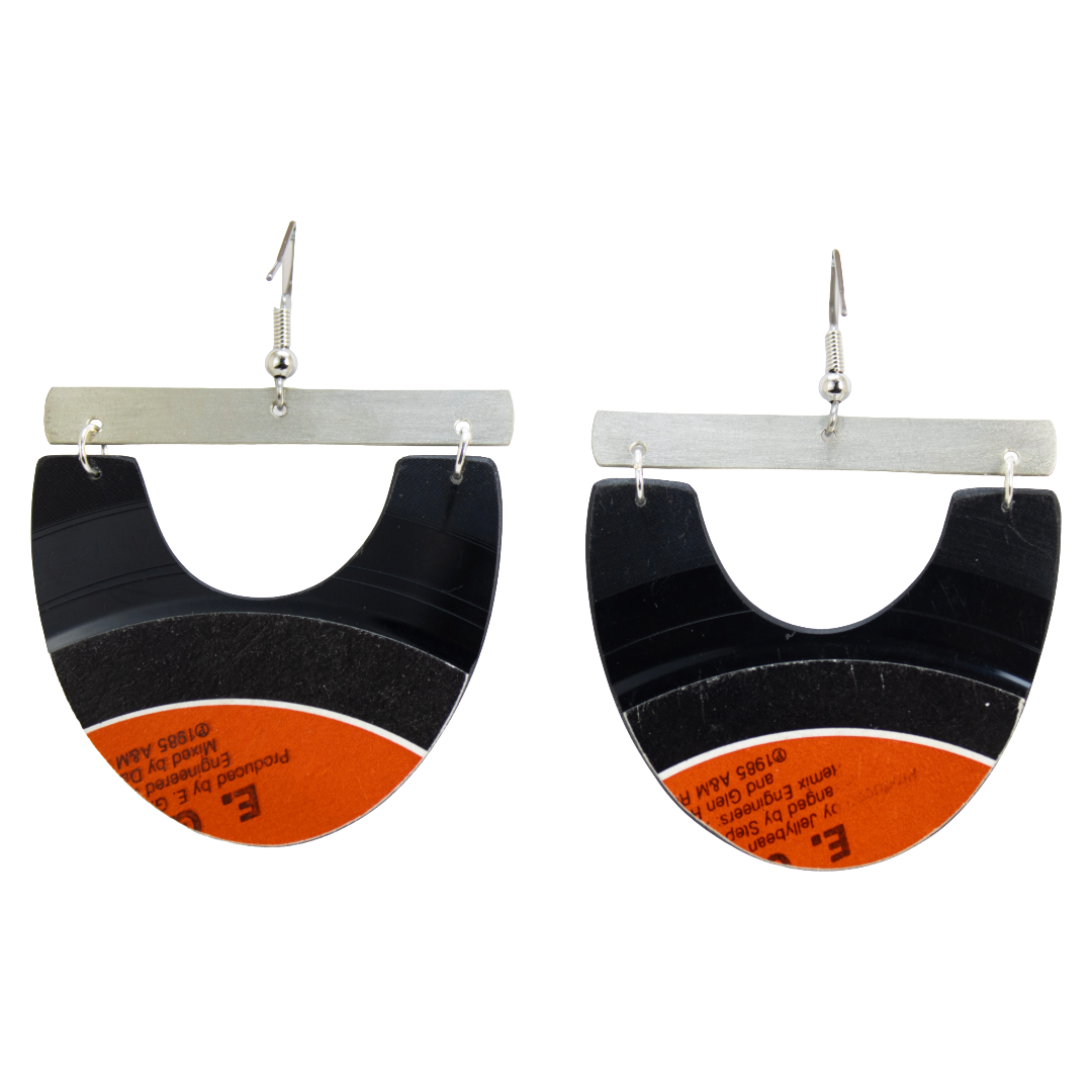 • Materials: Upcycled vinyl record, stainless-steel ear wire, nickel