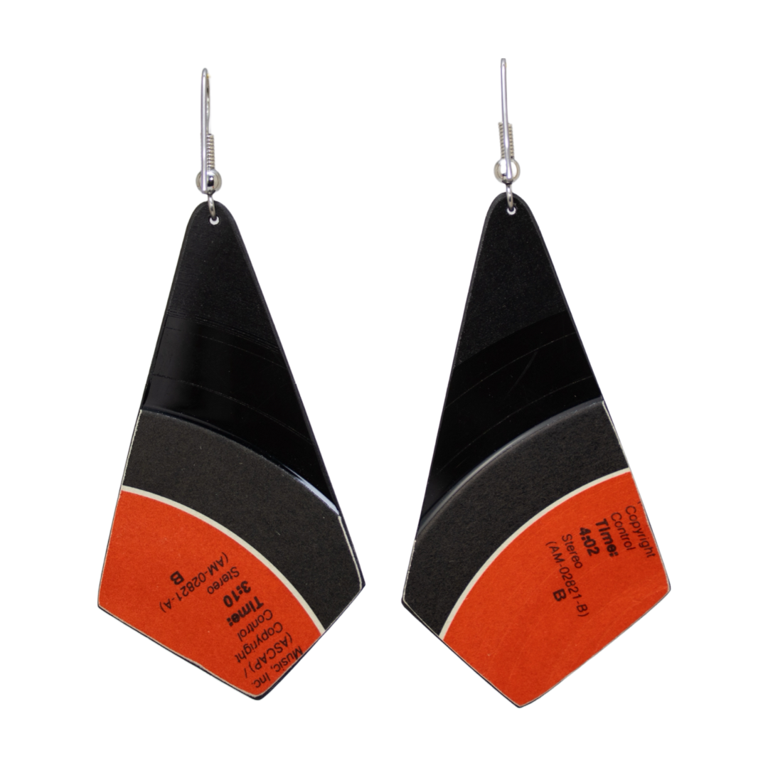 Be the first to review “Upcycled Vinyl Record Earrings ~ Falco ~ Large Oblong Quad”