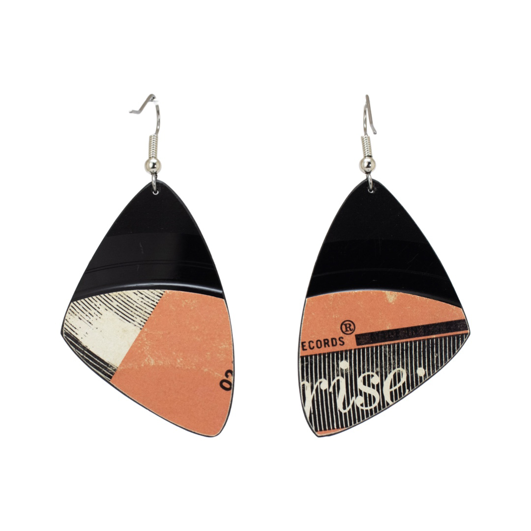Introducing our Upcycled Vinyl Record Earrings featuring the iconic Frank Sinatra! These Small Wing Dangle earrings are not only stylish and unique but also eco-friendly, made from recycled vinyl records. Each pair is handcrafted with love and care, making them a must-have accessory for any music lover.