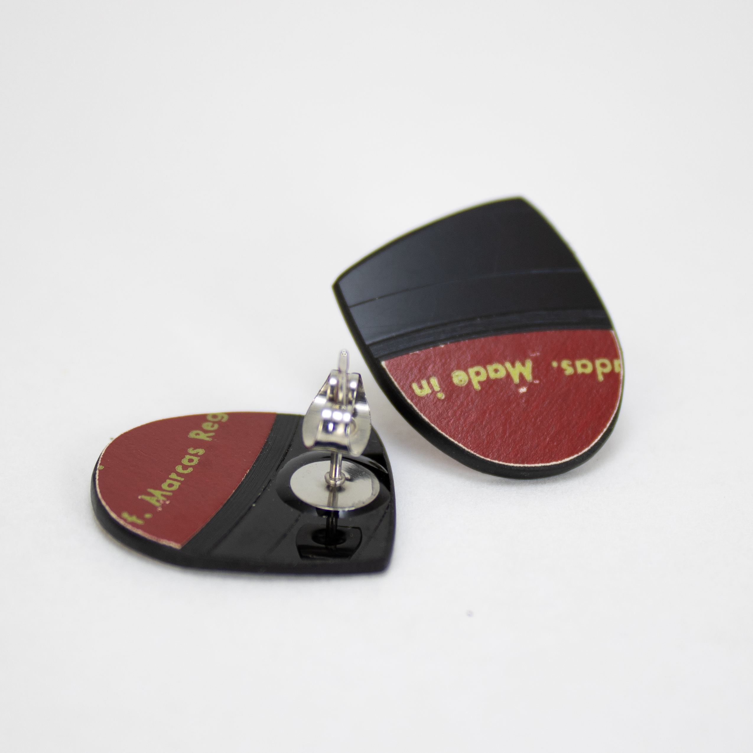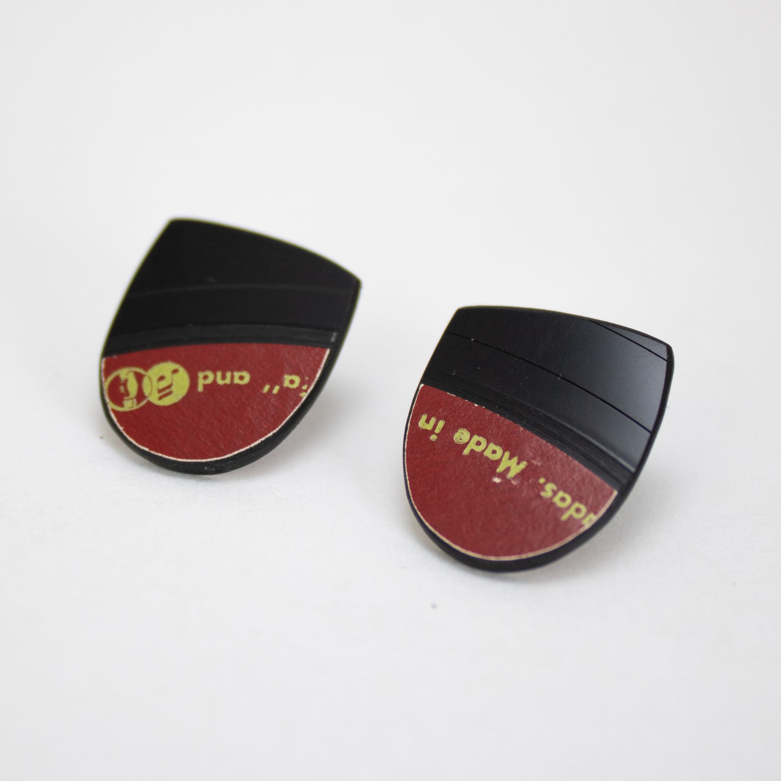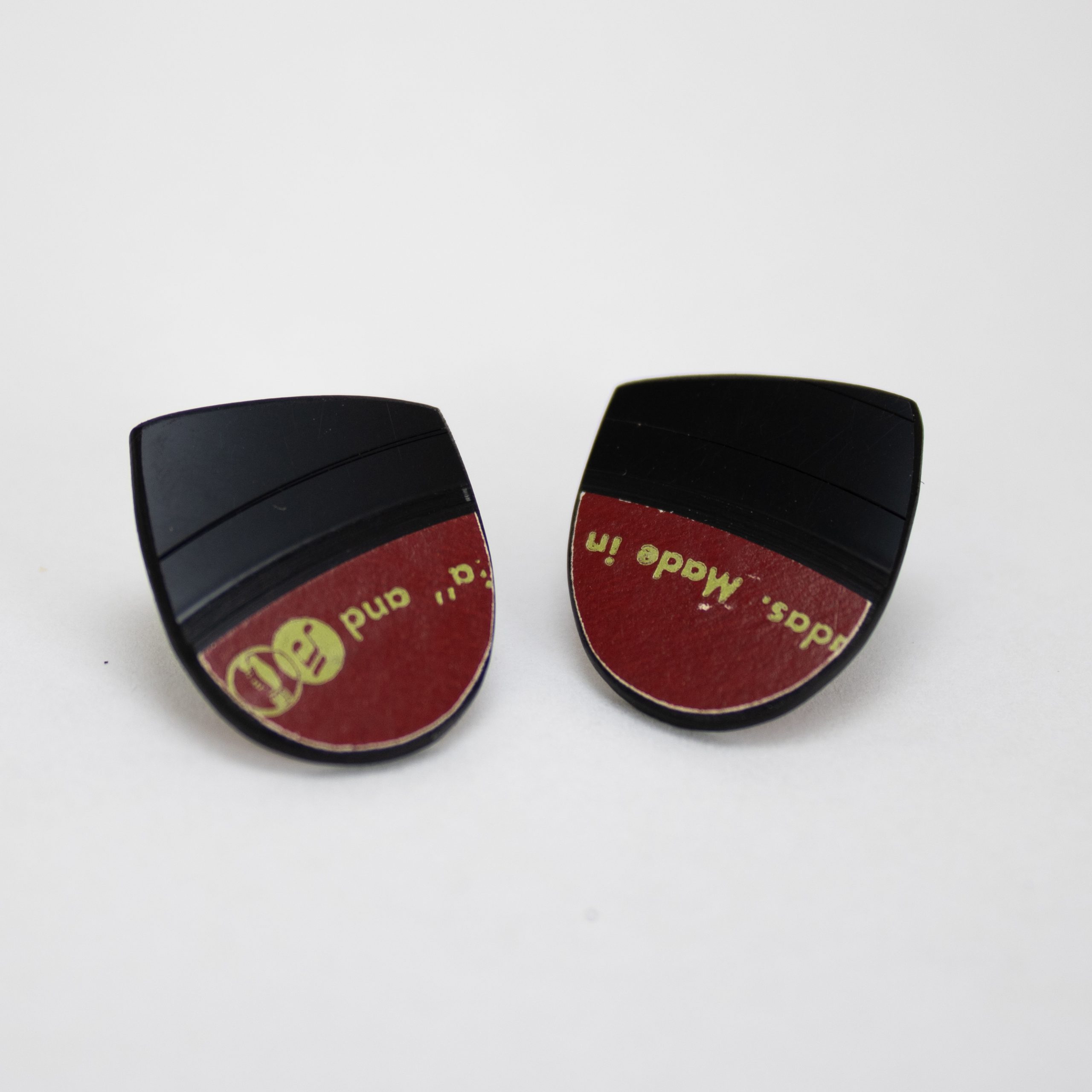 Each small button flat oval stud is carefully crafted from damaged vinyl records, making them a unique and sustainable accessory for music lovers.
