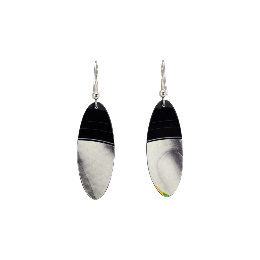 Upcycled Vinyl Record Earrings ~ Gino Vannelli ~ Extra Small Narrow Oval Dangle