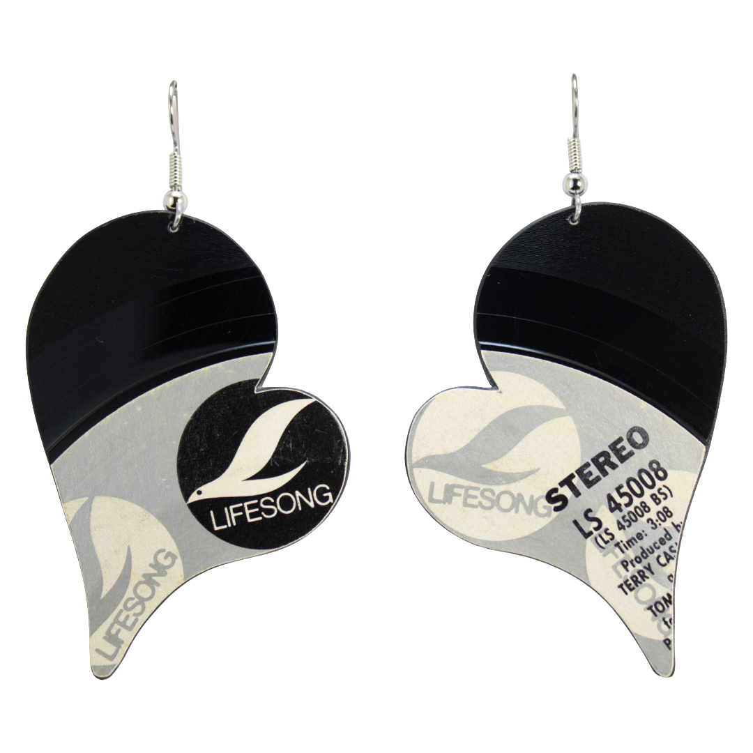 Each Large Full Heart Dangle is hand-cut and hand-filed from an authentic Henry Gross 45 rpm single featuring “Springtime Mama,” a feel-good anthem from the post-“Shannon” era. The full heart form reflects the song’s radiant melody and open-hearted lyrics, while the Lifesong Records label — a blend of sunset orange and cream — adds warm retro character. With smooth edges and a bold presence, these earrings capture the spirit of 70s optimism and turn it into wearable nostalgia.