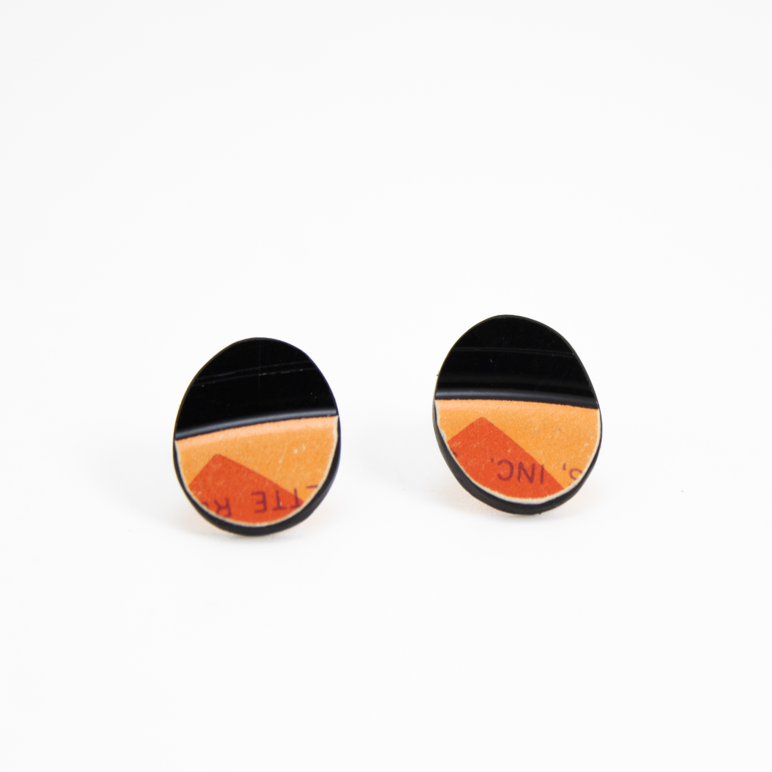 Handcrafted into mini oval stud earrings, each pair is a unique piece of music history transformed into wearable art.