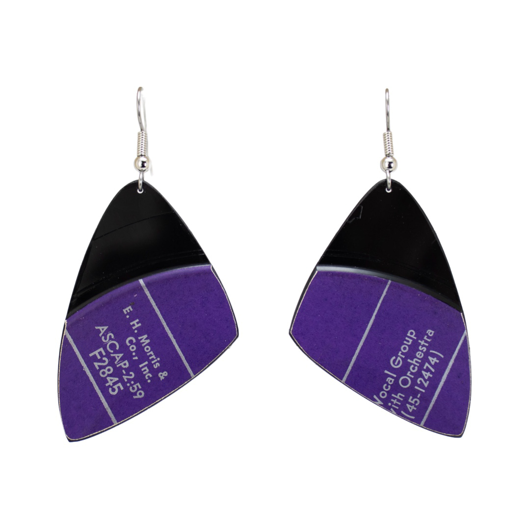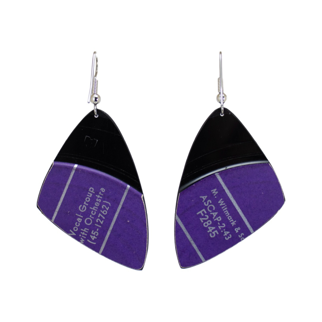 Handmade from a damaged vinyl record, these cute lightweight dangle earrings are the perfect accessory for music lovers and eco-conscious fashionistas.