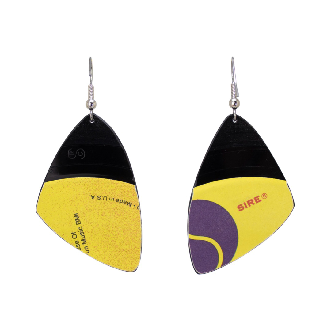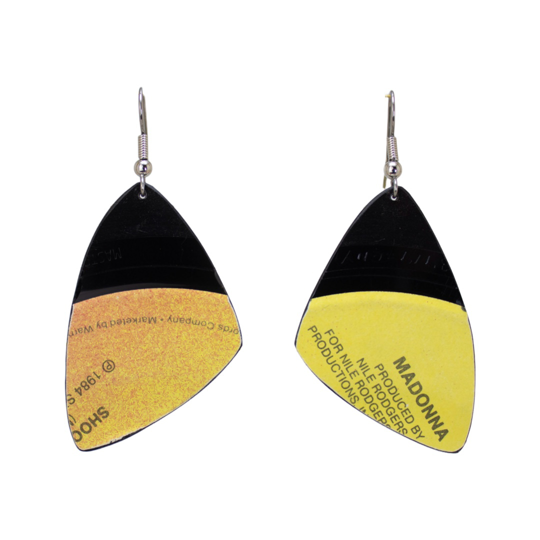 Add a touch of pop culture to your accessory collection with these unique Upcycled Vinyl Record Earrings featuring Madonna's iconic 45 rpm single, "Dress You Up". These lightweight dangle earrings are sure to make a statement and show off your love for this pop icon. Handmade with love with attention to detail and craft(wo)manship, this one of a kind accessory will soon be a staple in your life’s soundtrack.
