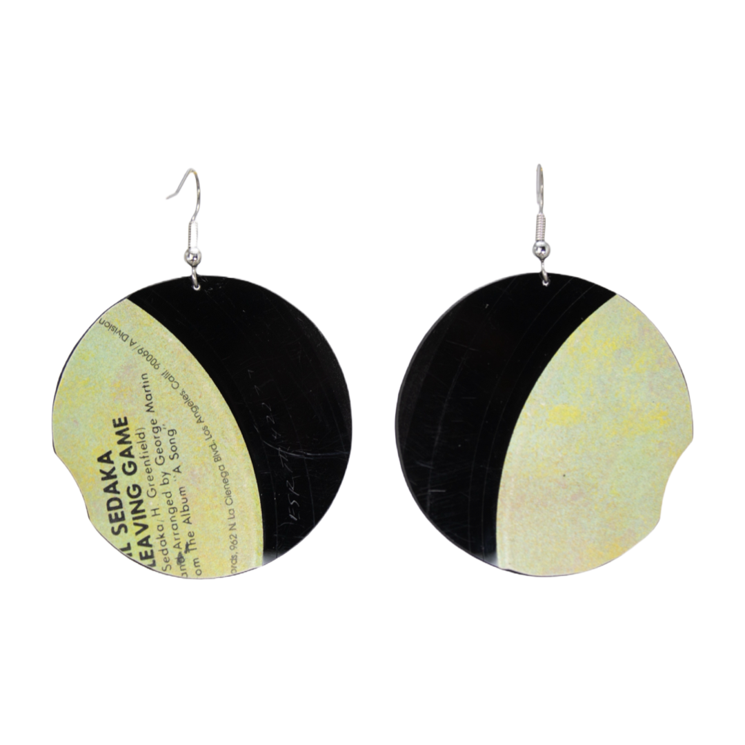 Upcycled Vinyl Record Earrings — Neil Sedaka “Amarillo” Large Round | Classic Collection | Pop | Premium Elektra Butterfly Pressing | reVinyled