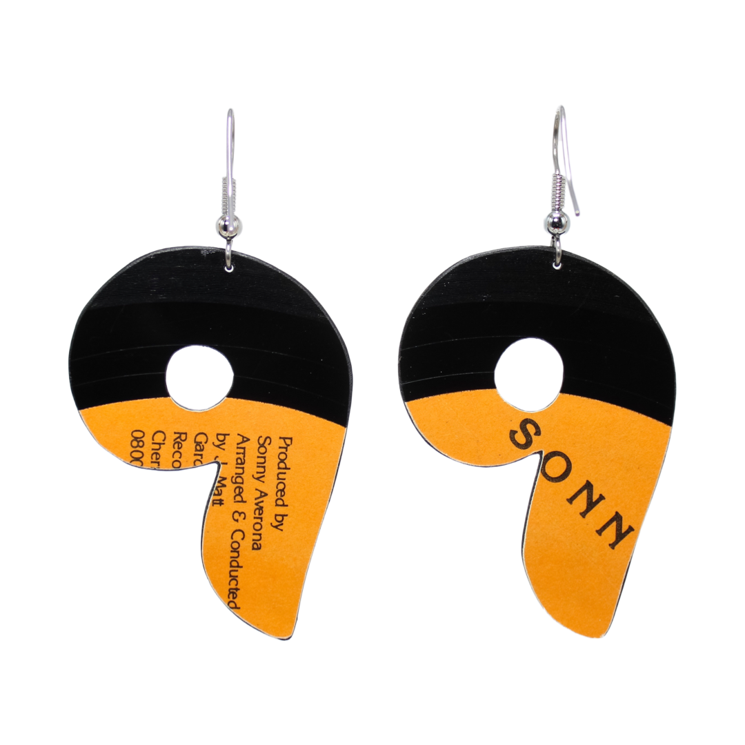 • Materials: Upcycled vinyl record, stainless-steel ear wire