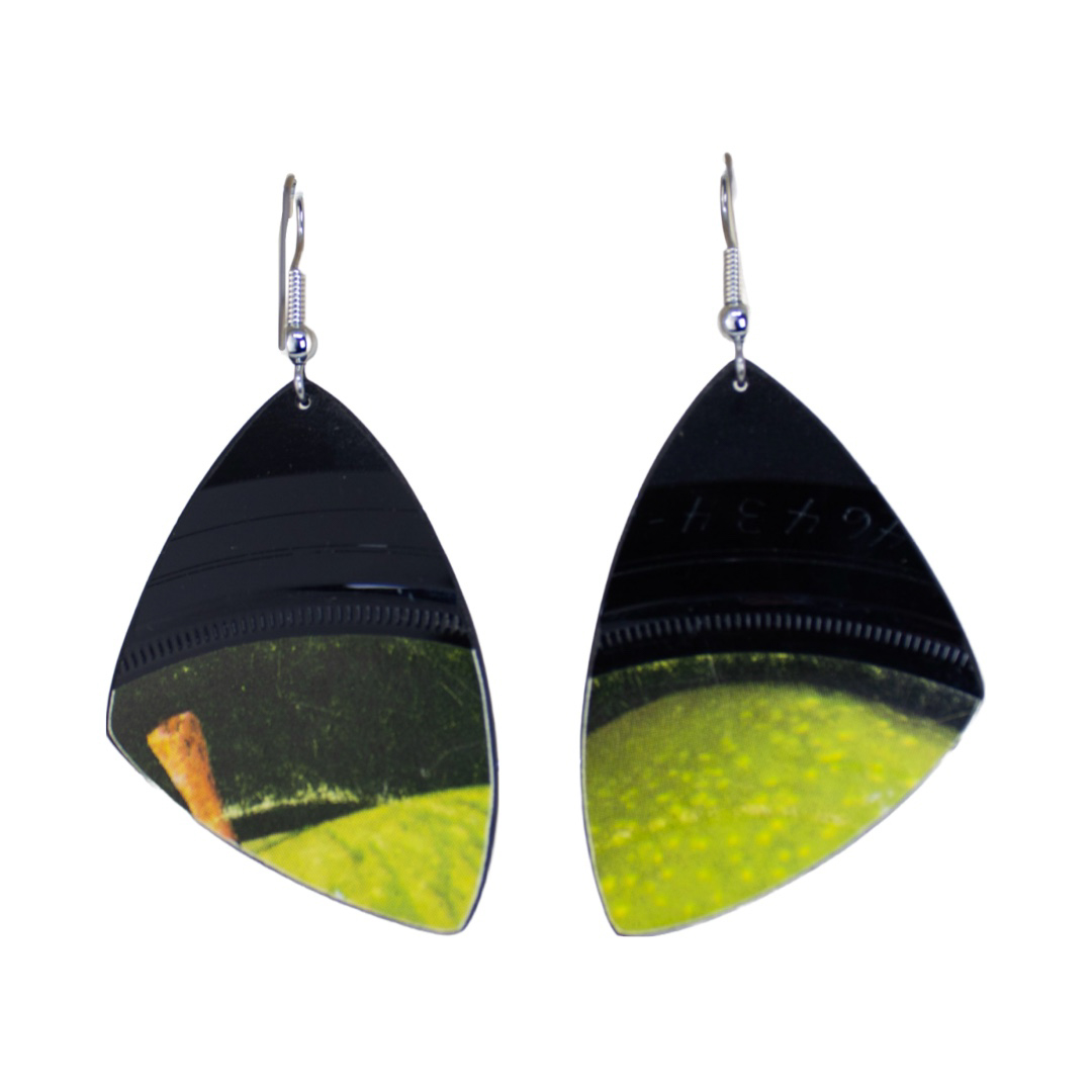 - Materials: damaged vinyl record, stainless steel ear wire