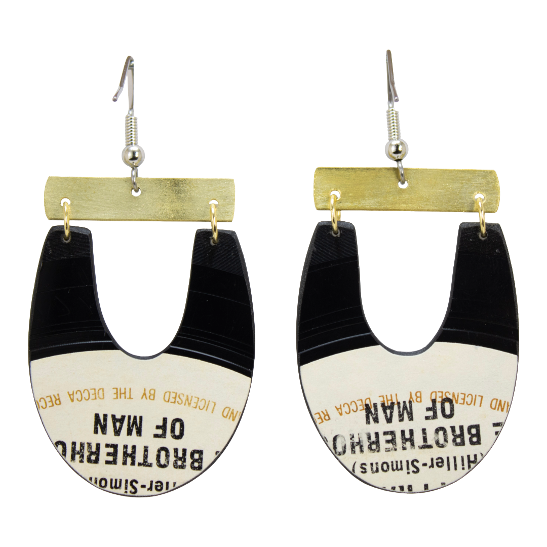 Upcycled Vinyl Record Earrings — The Brotherhood of Man Medium Beat Drop | Needle Drop Collection | Brass Bar Accent | reVinyled