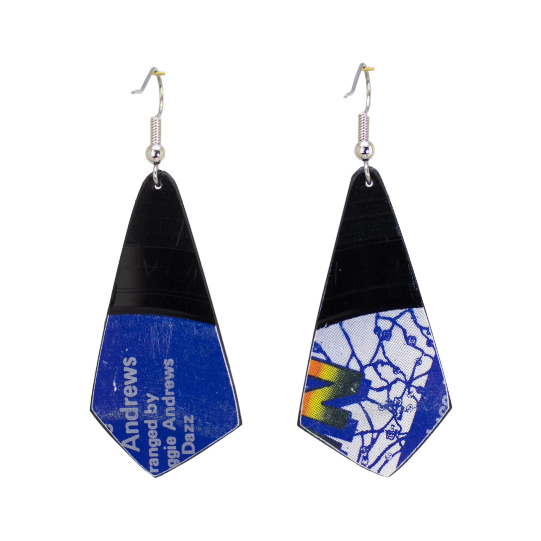 Add a touch of funky flair to your outfit with our Upcycled Vinyl Record Earrings crafted from a damaged The Dazz Band 45 rpm record on the iconic Motown Record Label. These Small eye catching earrings are perfect for music lovers and eco-conscious fashionistas alike. Each pair is handcrafted with care, making them a unique and stylish addition to your jewelry collection. Get ready to wow everyone with these one-of-a-kind earrings!