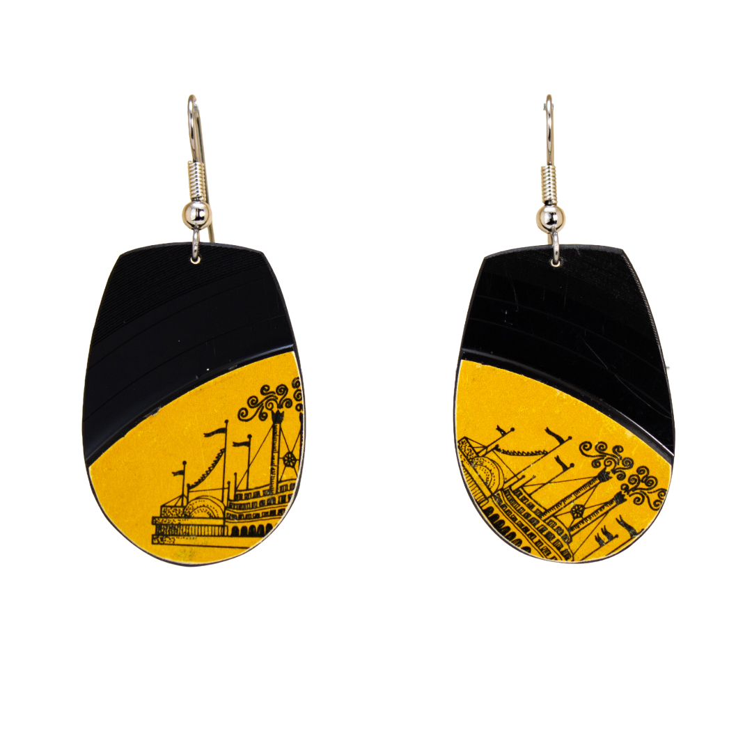 • Materials: Upcycled vinyl record, stainless-steel ear wire