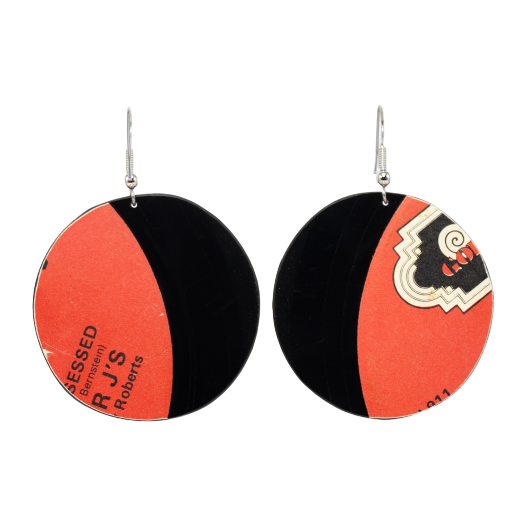 Upcycled Vinyl Record Earrings — Cathy Jean “Canadian Sunset” Extra Large Round | Classic Collection | Early Pop | reVinyled