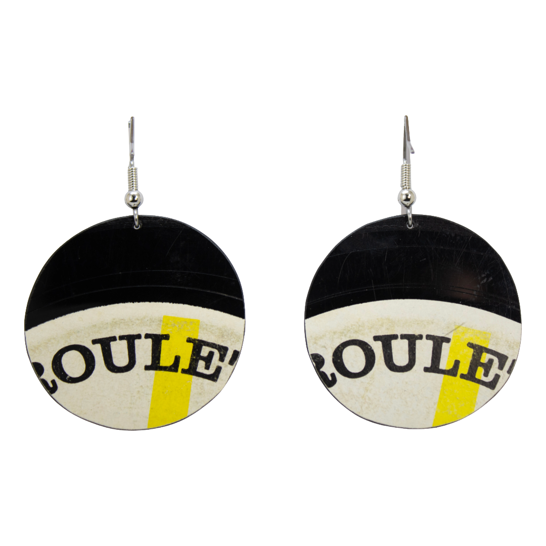 Each round classic dangle earring is crafted from vintage classical vinyl that once carried sweeping symphonies and timeless melodies. Hand-cut, hand-filed, and refined for subtle movement, these earrings embody slow design and sustainability. The clean lines and gentle gloss echo the poise of the genre itself — pure, balanced, and intentional. The soft label tones and slight surface textures reveal their past life while embracing a new purpose. It’s where eco-conscious meets effortless grace — quiet luxury, made by hand and full of story.
