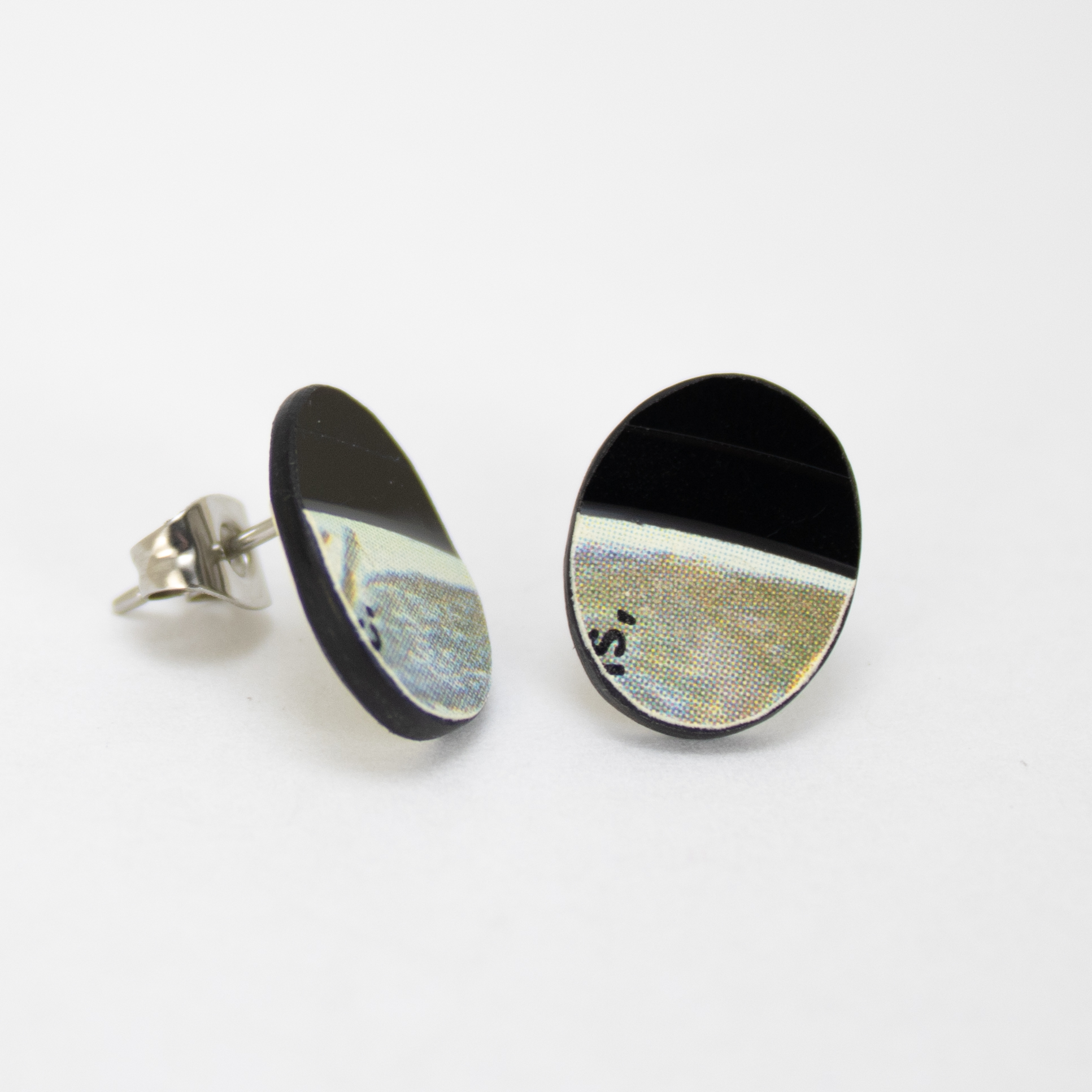 - Materials: damaged vinyl record, stainless steel post and butterfly back