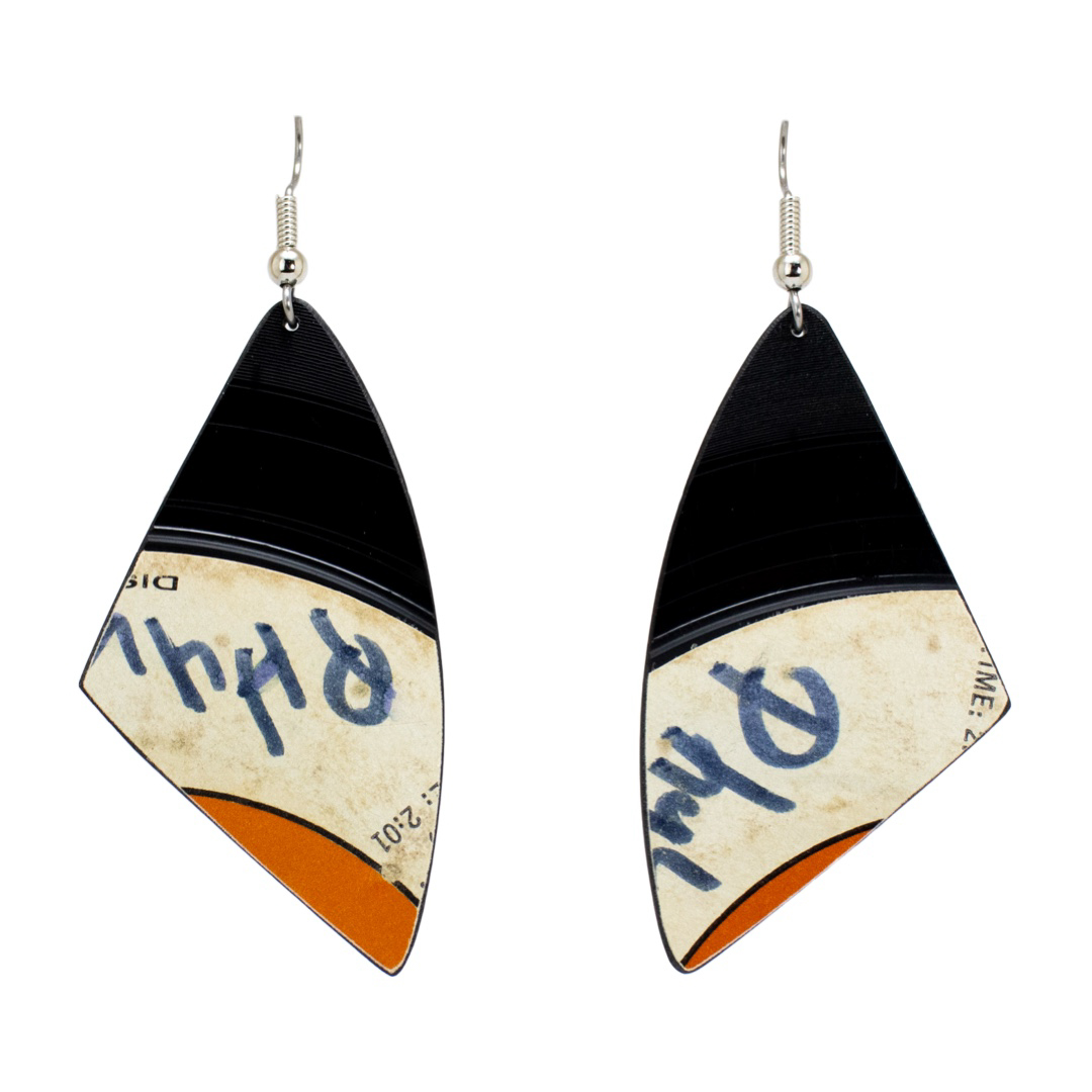 Add a touch of retro flair to your outfit with these funky Upcycled Vinyl Record Earrings featuring a damaged 45 rpm from The Toys, a girl group from the past!