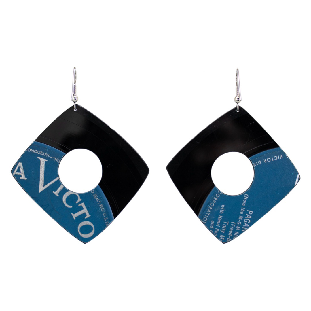Upcycled Vinyl Record Earrings — Jimmy Jan & Kjeld “Banjo Boy” Medium Diamond | Classic Dangle | European Pop | reVinyled