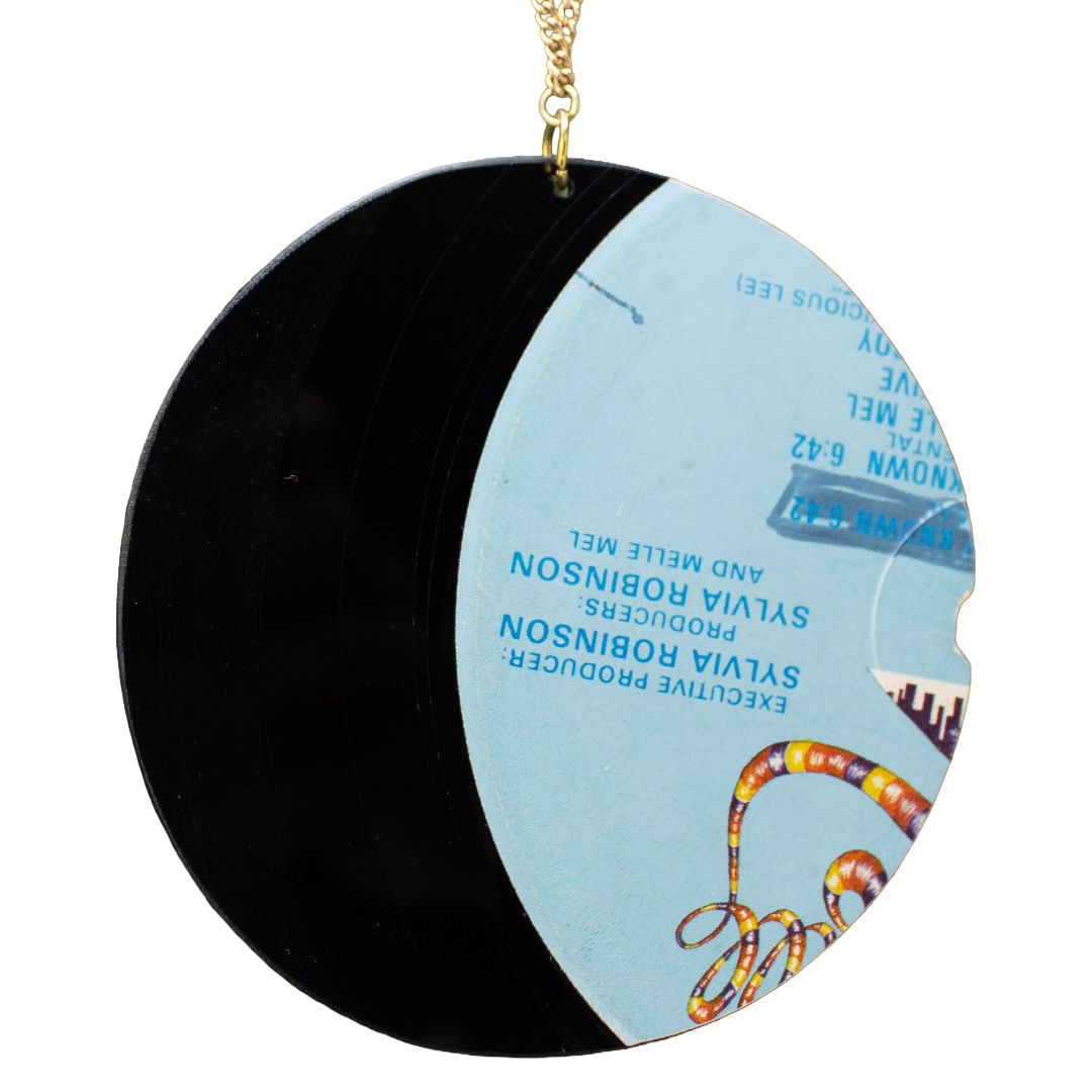 Hand-cut and hand-filed from an authentic Sugar Hill Records pressing of “Beat Street” by Grandmaster Flash, Melle Mel & The Furious Five, this Classic Round Ornament brings early hip-hop culture to your holiday décor. “Beat Street” played a major role in introducing breakdancing, DJ culture, and street artistry to mainstream audiences in the 1980s. Each ornament is shaped from real vinyl, carefully smoothed along the edges, and hung from a gold-colored base metal chain for easy display. Lightweight, meaningful, and full of musical legacy, it’s perfect for hip-hop lovers, vintage collectors, and anyone who decorates with style and soul.