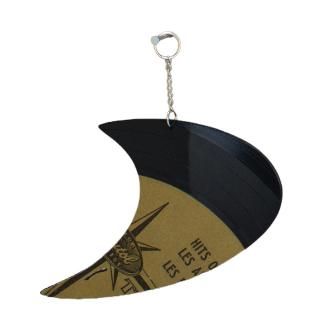 - Materials: Upcycled vinyl record, silver-tone hanging chain