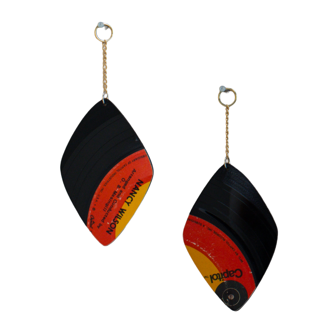 This Small Astro Petal ornament is hand-cut and hand-filed from an authentic Capitol Records pressing of Nancy Wilson’s seasonal classics. Wilson — one of the most influential jazz and soul vocalists of the 1960s — recorded these tracks during a transformative moment in American music, when jazz was crossing into pop, television holiday specials were shaping culture, and Black artists were gaining overdue recognition in the mainstream.