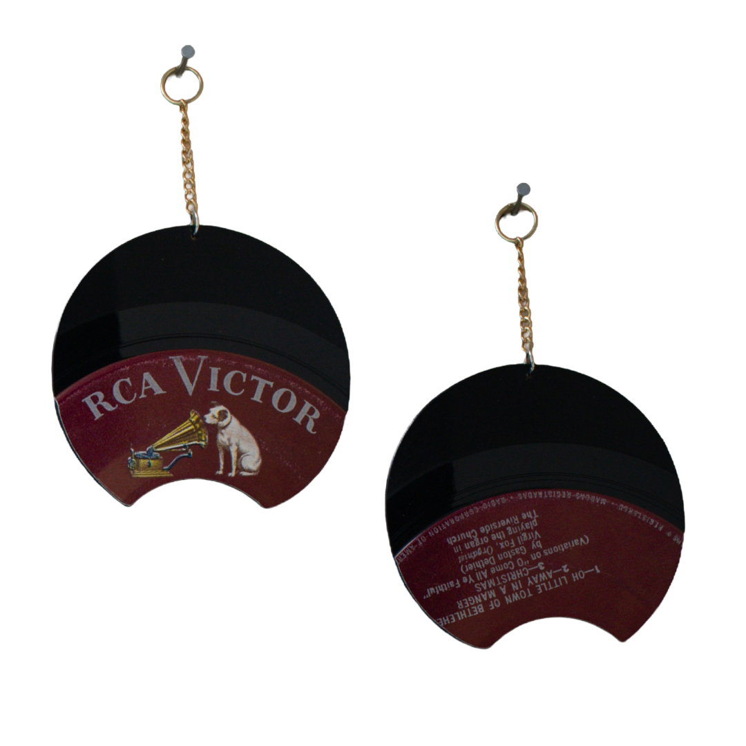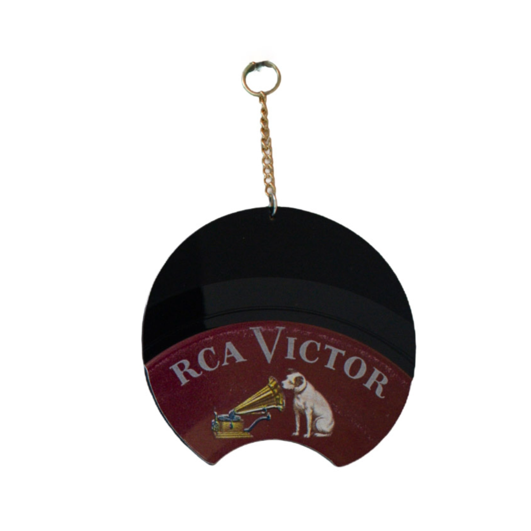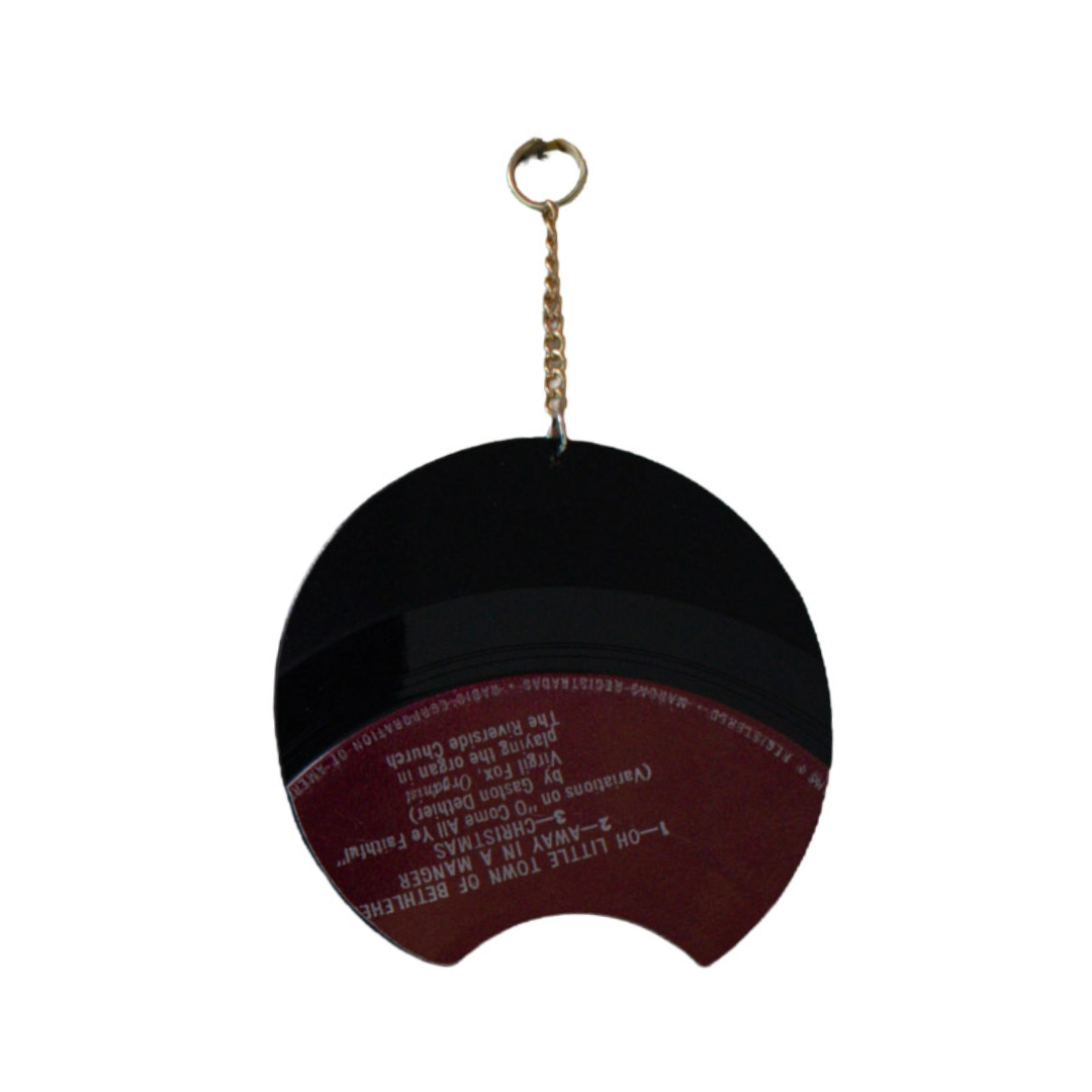 This Small Orbit Round ornament is hand-cut and hand-finished from an authentic RCA Victor single performed by legendary concert organist Virgil Fox. Known for his dramatic playing style and boundary-pushing performances, Fox brought classical organ music into the mainstream during the mid-20th century — filling cathedrals, symphony halls, and even outdoor arenas with Bach and holiday repertoire.